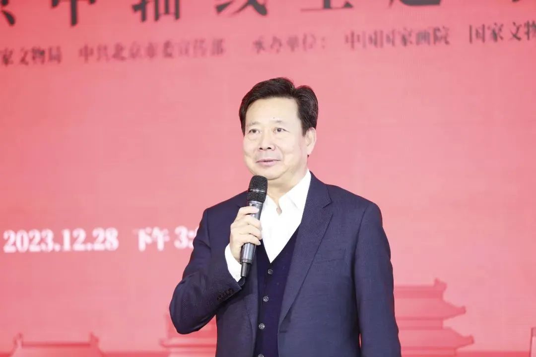 文化和旅游部党组成员、副部长,国家文物局局长李群宣布展览开幕。中共北京市委宣传部常务副部长赵卫东,中国国家画院原院长卢禹舜,国家文物局党组成员、副局长解冰先后在开幕式上致辞。李群、赵卫东、国家文物局机关服务中心主任陈红、中国国家画院党委书记燕东升、北京市文物局局长陈名杰、北京出版集团董事长张爱军共同启动开幕式。开幕式由燕东升主持。