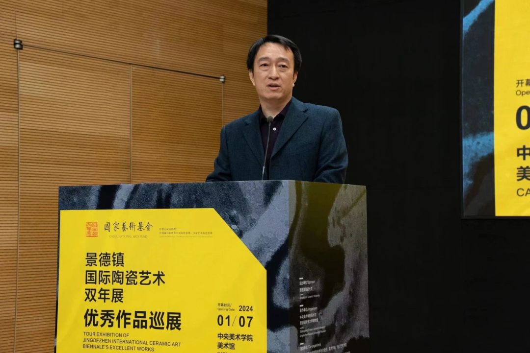 中国美术家协会主席、北京美术家协会主席范迪安在致辞中表示,“景德镇国际陶瓷艺术双年展”在中央美院举办,有助于不同学科专业的师生从陶瓷艺术中思考陶瓷材料媒介的转换运用,领悟陶瓷艺术蕴含的工匠精神,最为重要的是认识陶瓷艺术的文化内涵和文化精神,在各学科专业领域的创造创新中自觉弘扬中华优秀传统文化。