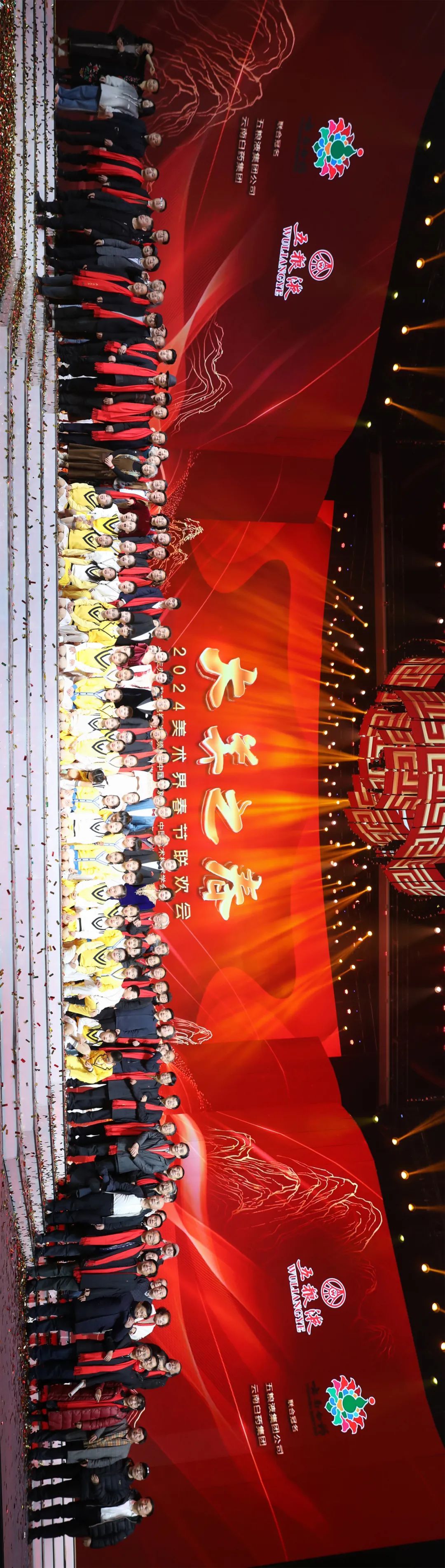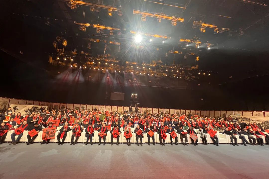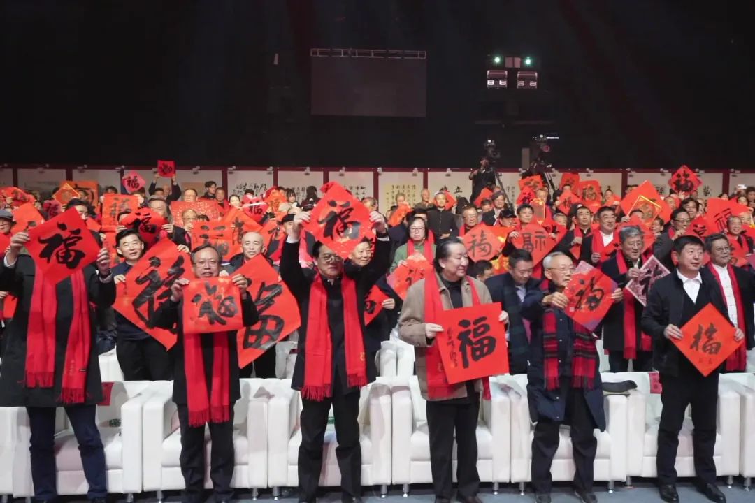 在洋溢着欢乐与喜庆的氛围中,全体艺术家们集体起立,将手中的“福”字高高地举起,为2024年的“大美之春”送上了诚挚的祝福。期盼这份祝福能化作温暖的力量,让艺术事业的未来发展更加璀璨夺目!