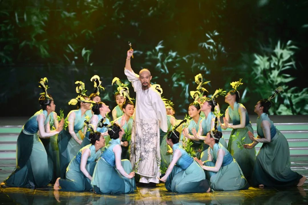 在浓墨重彩的中国传统书画长河中,文化传承的魅力无时无刻不在彰显,晚会上演了经典舞蹈作品《板桥画竹》,在诗意中传承着中国人独有的笔墨精神。