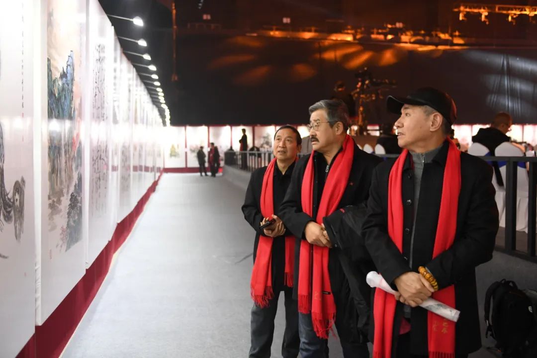 民政部原党组书记、部长黄树贤,中国文联原副主席覃志刚、杨承志,中国美术家协会名誉主席冯远,全国政协副秘书长、民盟中央专职副主席、中国美术馆馆长吴为山,民革中央专职副主席谷振春,中国国家画院党委书记燕东升,全国政协书画室副主任赵学敏,中国文化艺术发展促进会主席杨晓阳,中国美术家协会副主席、书画频道中国书画艺术研究院院长徐里,中国艺术档案学会名誉会长张显,中国美术家协会副主席王书平,中国书法家协会顾问张飙,中国国家画院原院长卢禹舜,原副院长曾来德、纪连彬、于文江,中央纪委驻司法部纪检组原组长韩亨林,北京市原副市长孙安民,中国民间文艺家协会原分党组书记、副主席罗杨,天津美术学院院长贾广健,华北能源监管局党组书记、局长王思强,中国女画家协会主席孔紫,中国文房四宝协会会长桑福金,中国美术家协会分党组成员、副秘书长章云,中国外文局副局长陆彩荣,中央军委办公厅原副主任曹育民,国家进出口商品检验局原副局长孟晓苏,中国艺术档案学会会长陈秀华,云南白药集团董事、总裁、首席执行官董明,五粮液融媒体中心副主任王健,平安银行副行长鞠维萍,北京和众运输集团总裁宋少波,云南白药综合管理中心总经理张泽斌,书画频道董事局主席王平,书画频道总裁李培元,以及来自全国各省美协、书协、画院主要负责人、书画频道中国书画艺术研究院研究员等千余人出席了晚会。