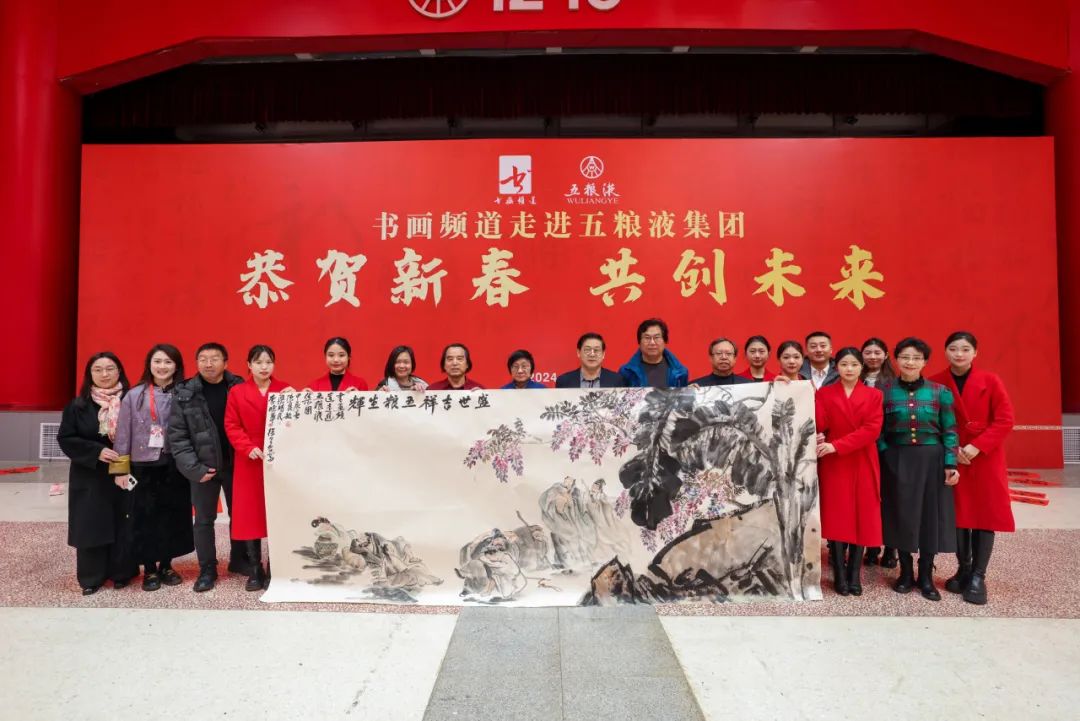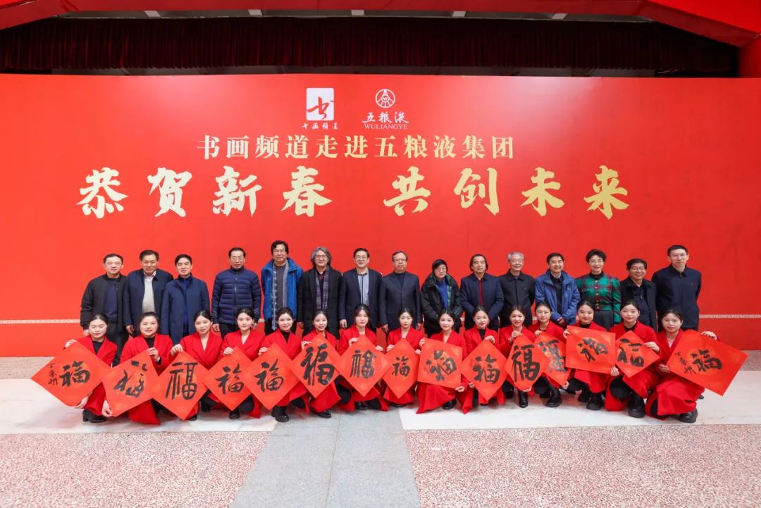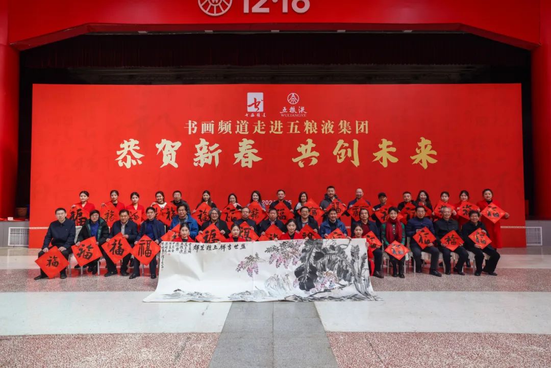 五粮液处处洋溢着文化气息,酒文化和书画文化是相连的,都是文化传承。书画频道带领艺术家在新春佳节之际走进五粮液集团,为工作在一线的广大干部职工写春联、送福字,使传统书画艺术与五粮美酒的和美文化触碰交融,既是对中华优秀传统文化的弘扬传承,也是深入学习贯彻“习近平文化思想”的生动实践。书画频道与五粮液的精诚合作,必将成为跨行业的合作典范,携手共同绘就中华文化艺术的复兴与繁荣。