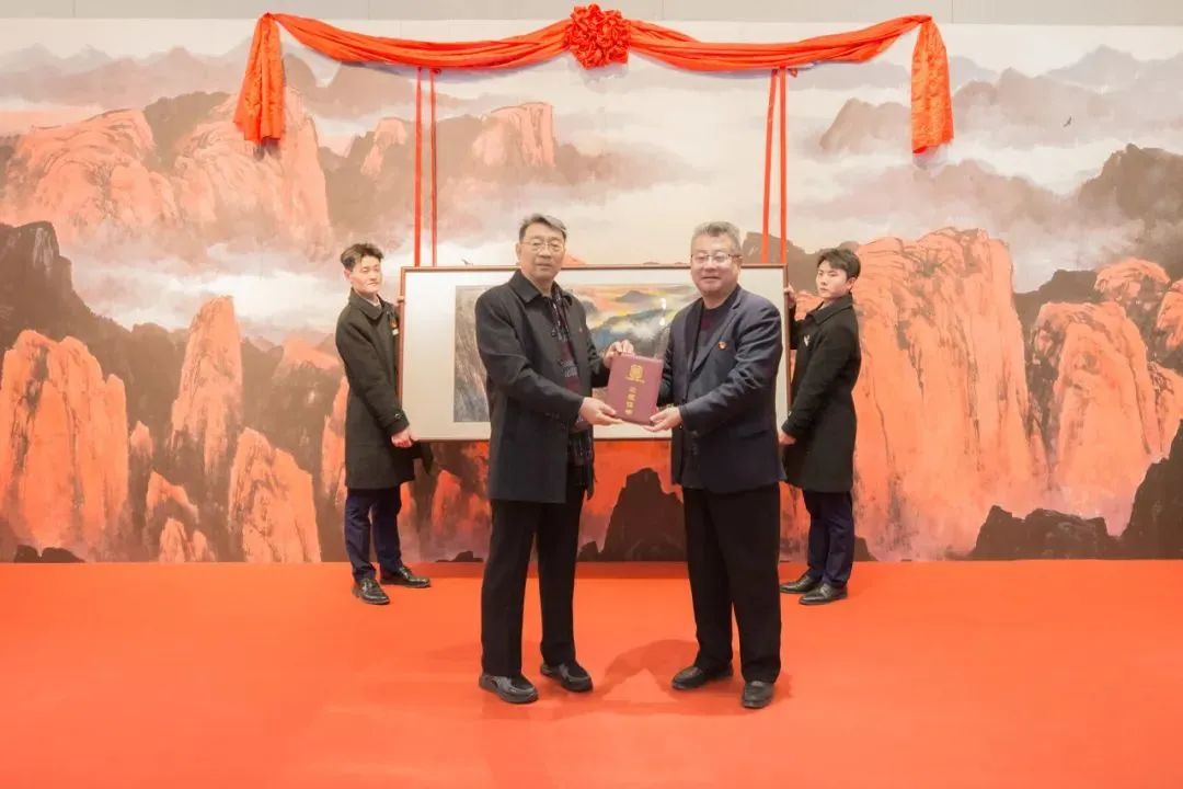 △ 中国园林博物馆党委副书记白旭接受傅以新捐赠书画作品