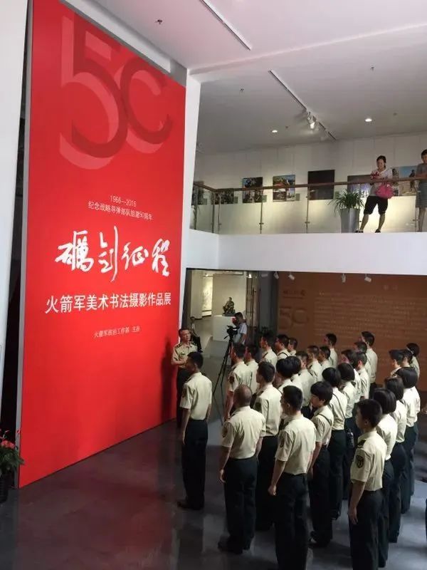为官兵讲解“砺剑征程·火箭军美术书法摄影展”(2016·北京)