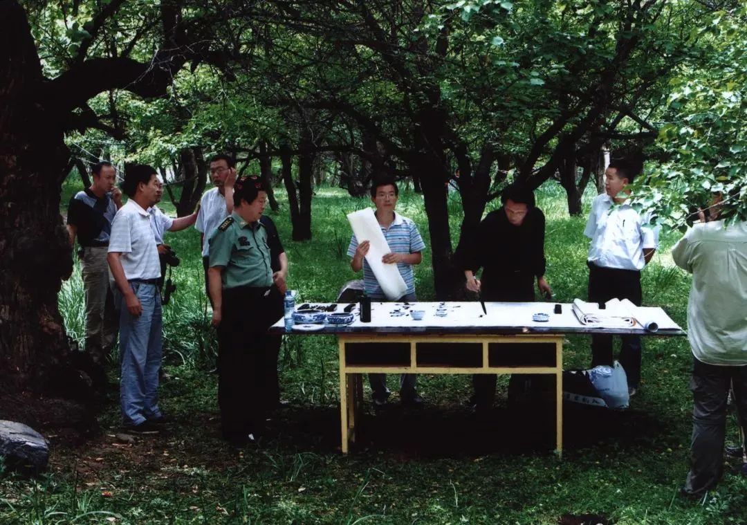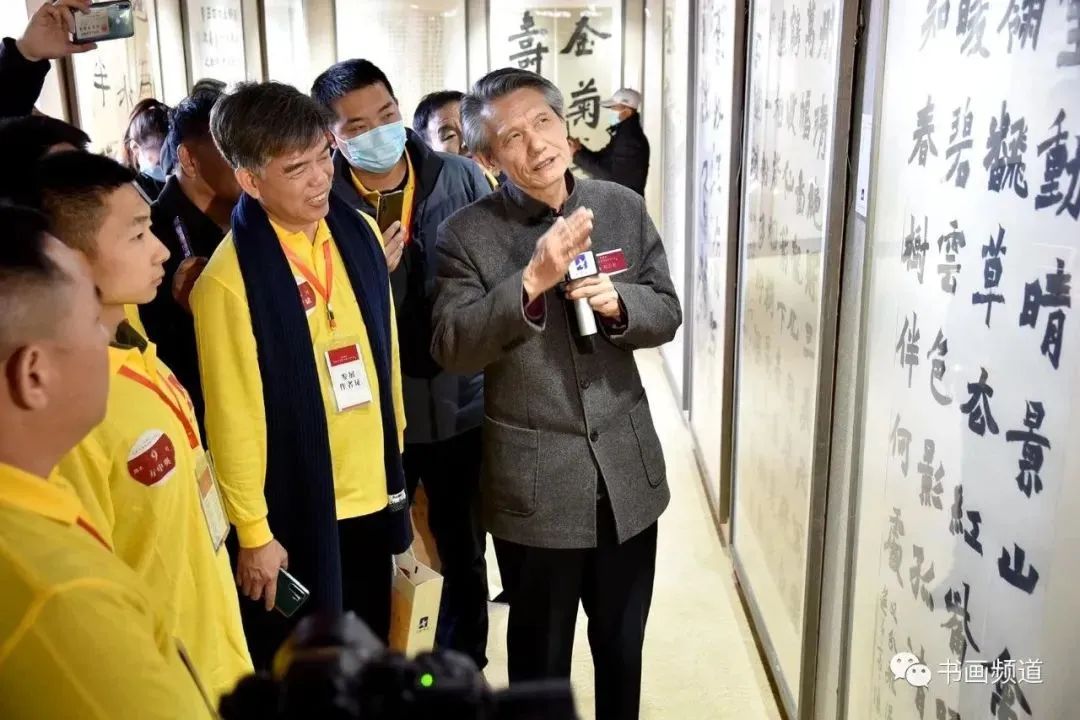 刘洪彪(前排左五)与众多书法名家莅临书画频道指导首届全国魏碑书法双年展(2020年)