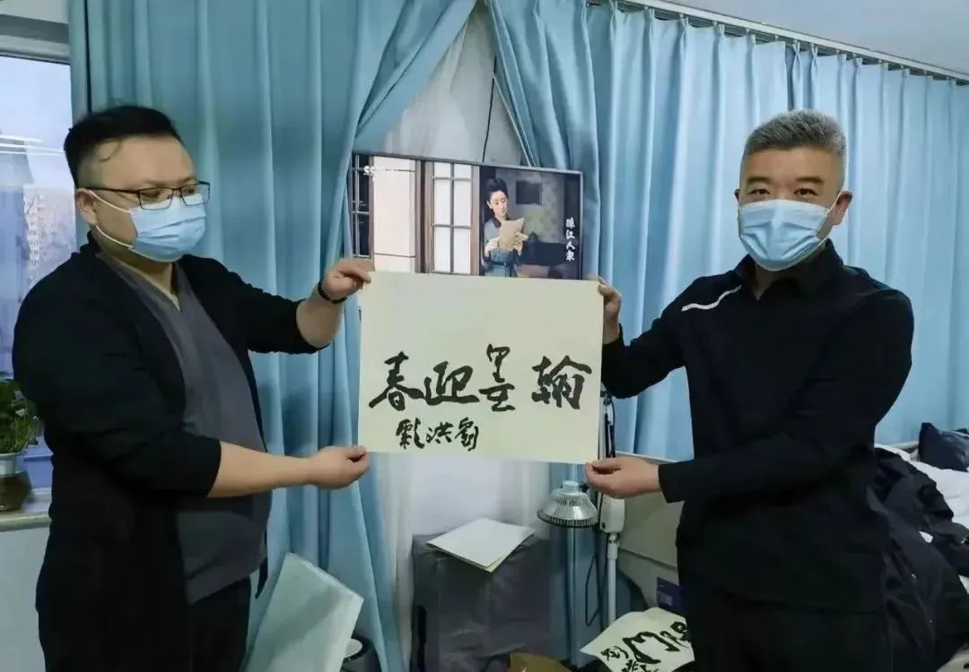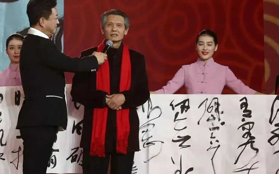 刘洪彪在“大美之春”新春联欢会上用书法作品向全国人民送祝福 (2018年)