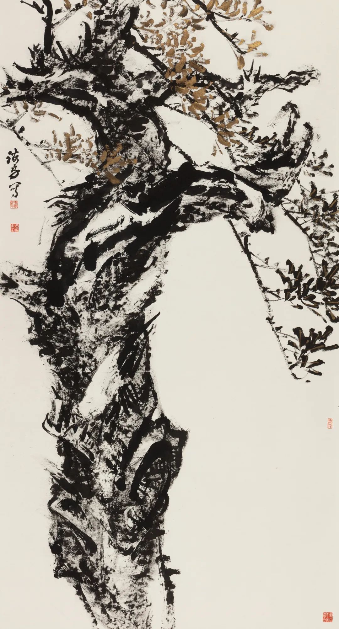 《胡杨颂系列·凌云霄》180×96cm 纸本设色 2023年