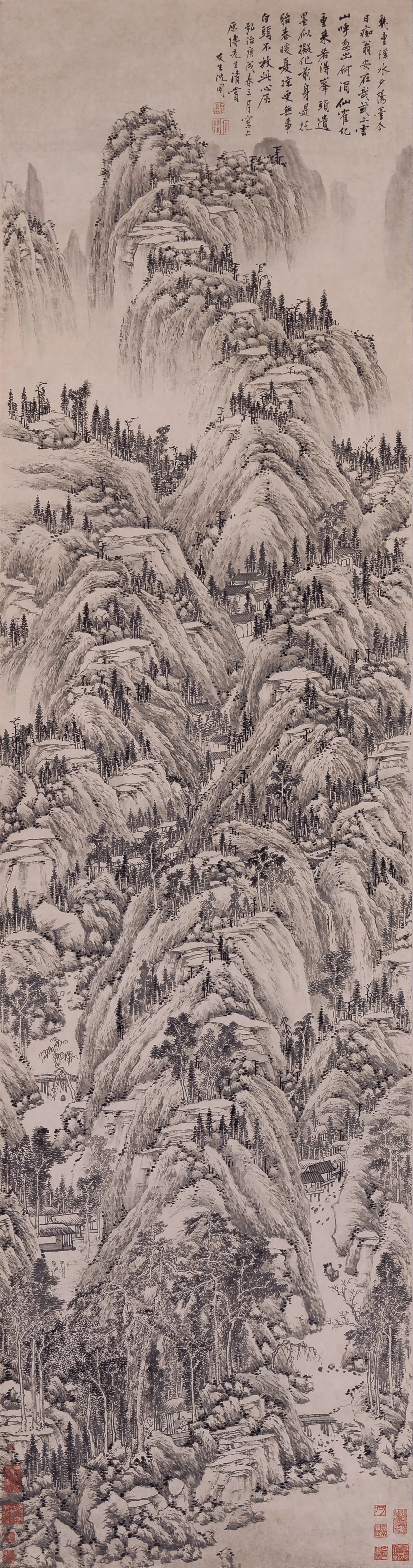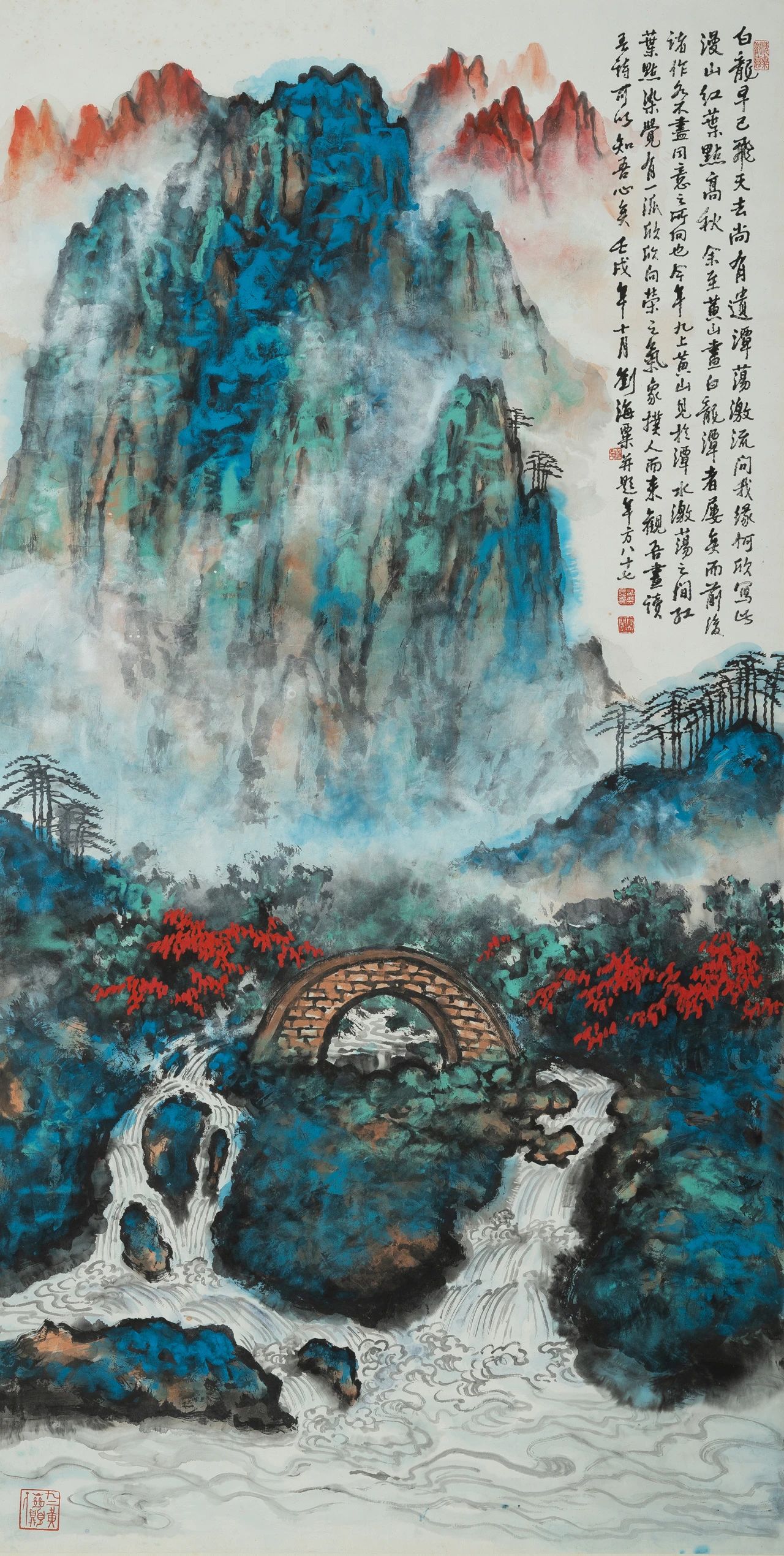 展览以山水画作品为专题,精选了馆藏的古代、近现代、当代山水画中的精品,从明代杰出书画家、吴门画派创始人沈周的《为吴宽作层峦叠嶂图》、再到近代大家张大千的《赤壁泛舟》、黄宾虹的《阳朔山中游记》、刘海粟的《九上黄山》以及何海霞的《天山南北》等大家的50幅代表作悉数亮相。