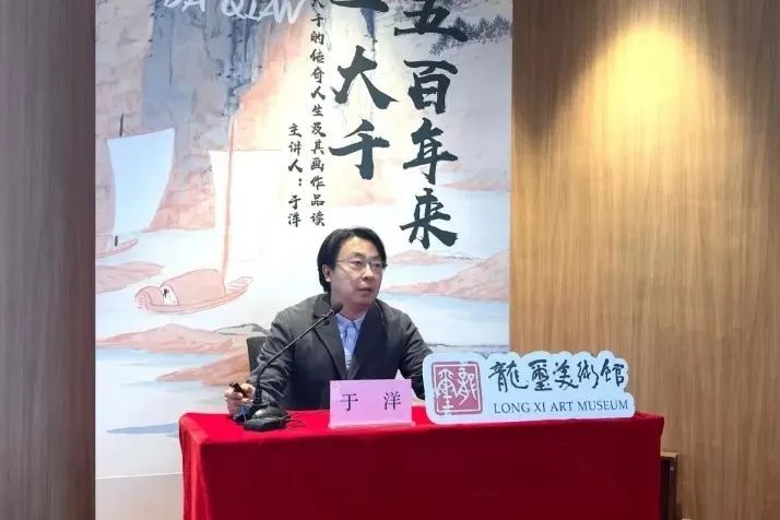 为使观众更加立体、深入的学会如何欣赏山水画。龙玺美术馆特别举办了一场公益讲座。中央美术学院教授、龙玺美术馆学术总监于洋为观众带来了一场关于张大千的传奇人生及其画作解读的精彩分享。