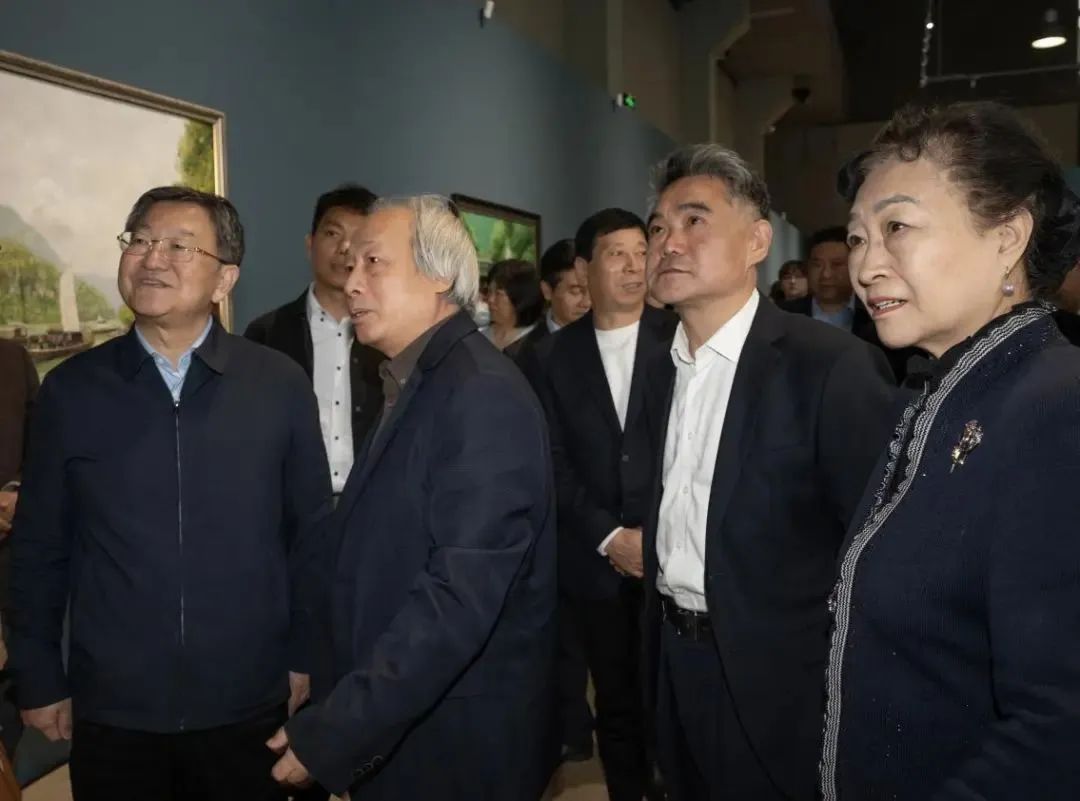 中央组织部原副部长吴玉良(左一),原文化部党组副书记、副部长赵少华(右一)在展厅观展