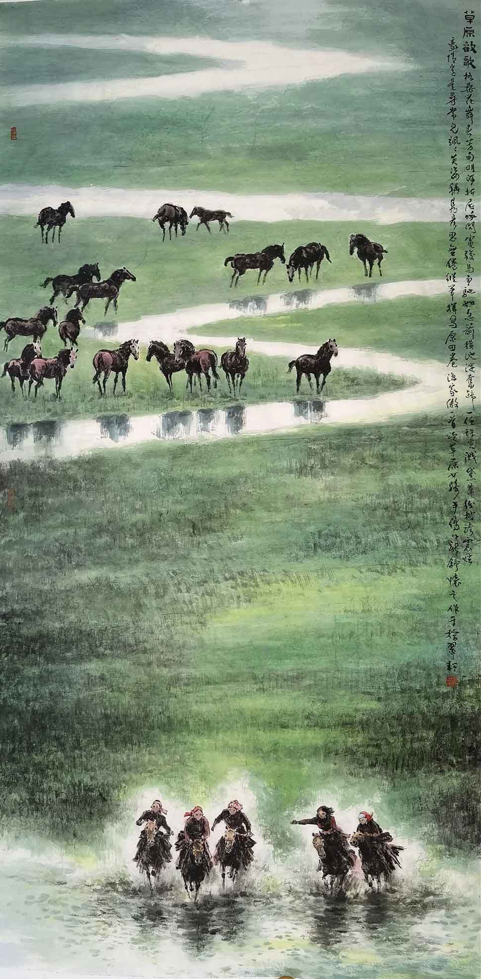 《草原欢歌》136x68cm