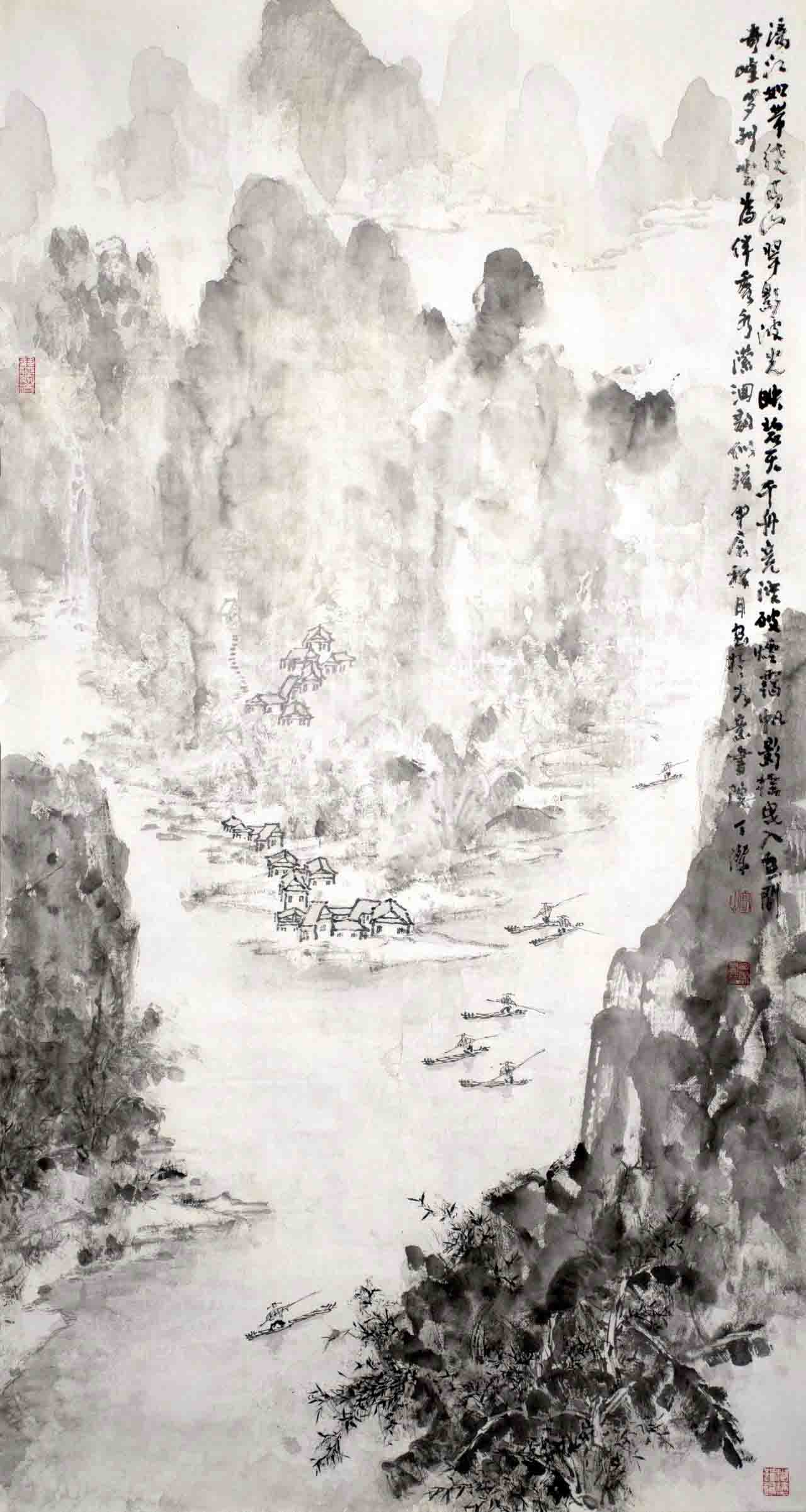 《漓江如带绕青山 翠影波光映碧天》178x96cm