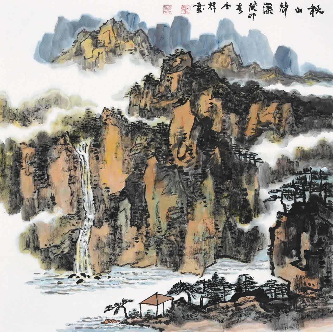 《秋山声瀑》69x69cm