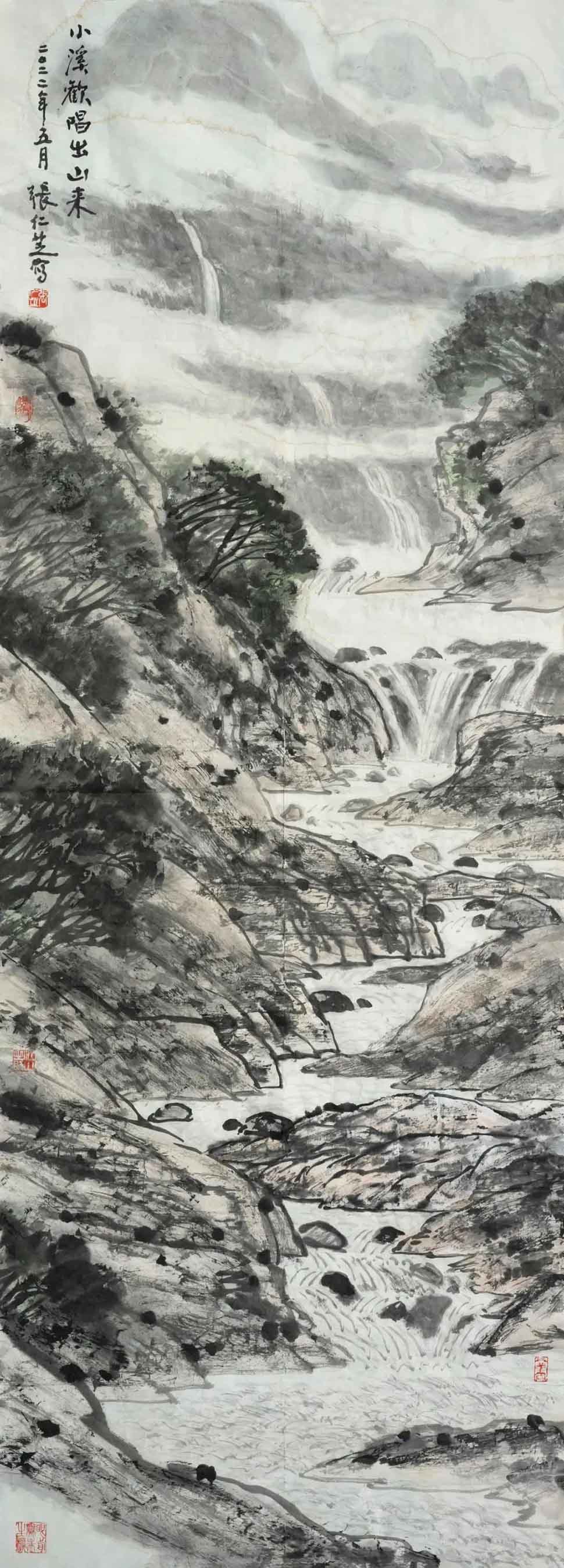 张仁芝《小溪欢唱出山来》176.5x63.5cm