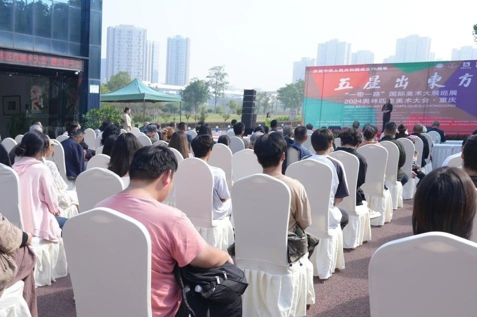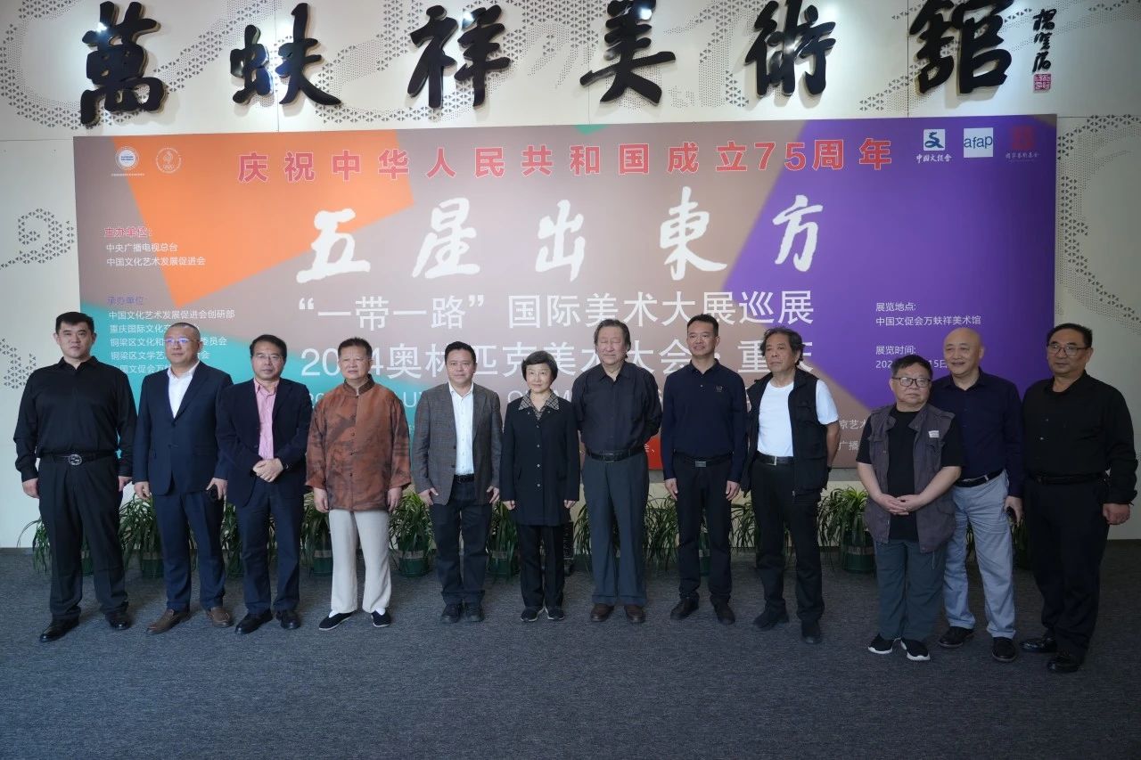 由中国文化艺术发展促进会、中央广播电视总台主办,中国文促会创研部、重庆国际文化交流中心、重庆市铜梁区文化和旅游发展委员会、重庆市铜梁区文学艺术界联合会、中国文促会万蚨祥美术馆联合承办的“五星出东方‘一带一路’国际美术大展重庆巡展”暨“共筑和平——2024奥林匹克美术大会·重庆”在中国文促会万蚨祥美术馆启幕。