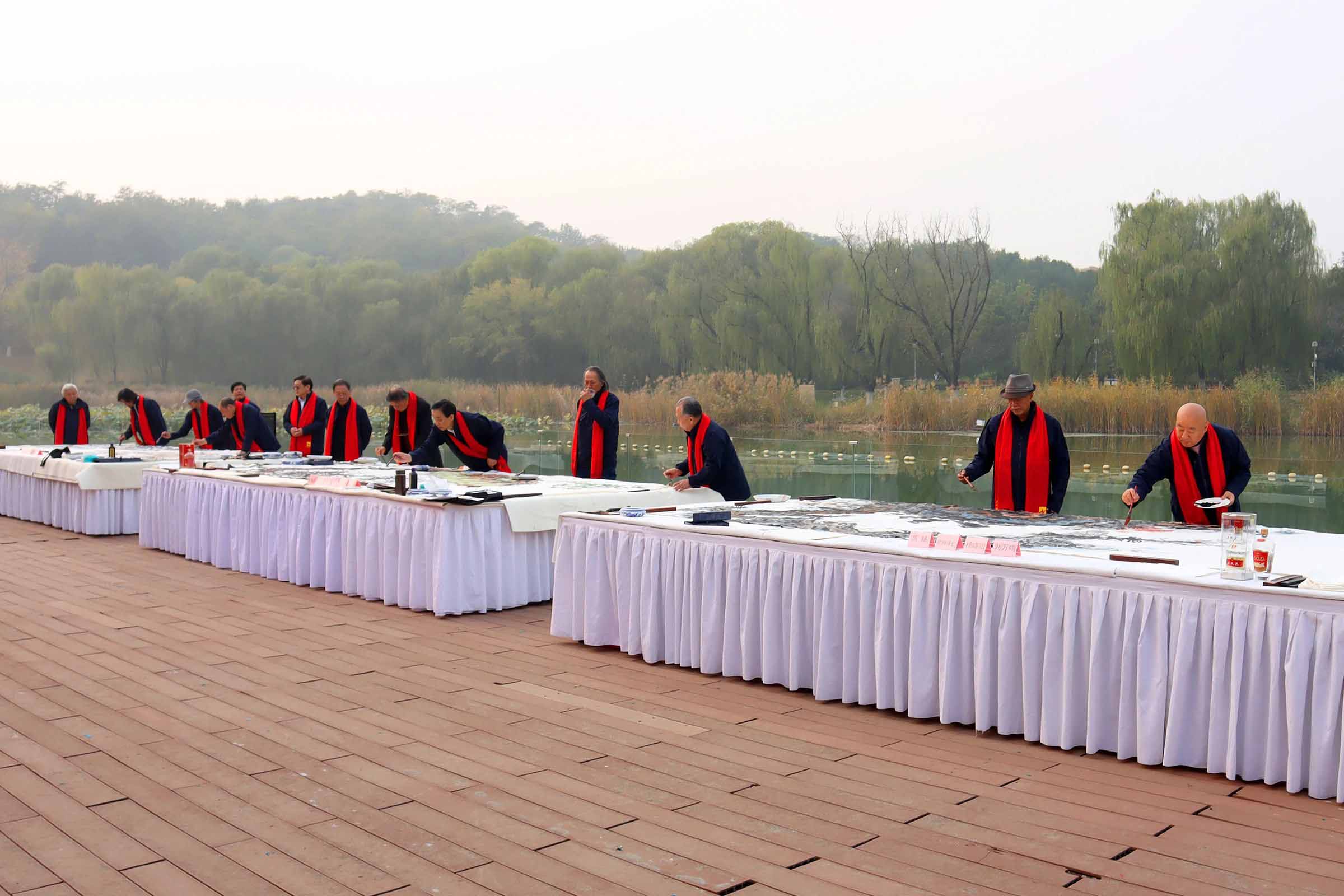 创作现场,诸位画家合力探讨主题内容、构思立意,力求将不同画家的笔墨特点、艺术风格和谐地融合在一起,以开放包容的姿态展现“各美其美,美人之美,美美与共,天下大同”的和美精神,向广大观众传达着“大美之春”所倡导的艺术主旨。