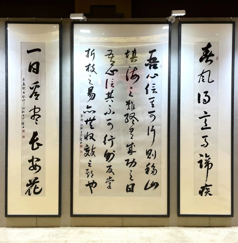 王少跃自幼随其父练习书法,后得幸师从书法大家王遐举先生与夏湘平先生,深得书法精髓。后在此基础上勇于探索,不断创新,形成了自己独特的艺术风格。他的作品既保留了传统书法的韵味与美感,又融入了现代的审美元素,使得书法作品更加贴近当代人的审美需求。展览现场展出的书法作品五体兼备,篆隶楷行草各具特色,令人耳目一新。