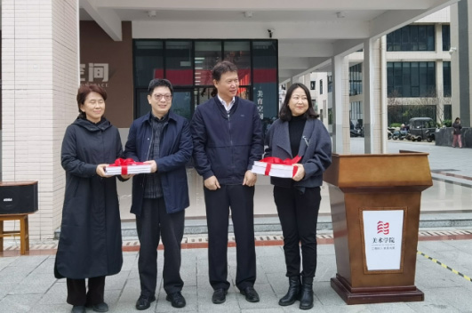 王平、李岩向吉首大学美术学院书记王浓章、院长李婷婷捐赠美术书籍、画册