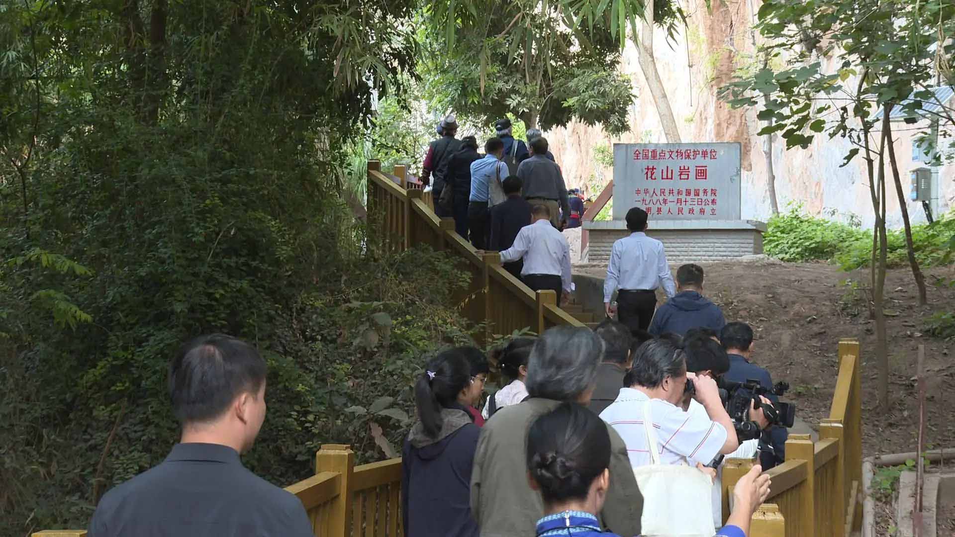 采风团一行抵达广西崇左市,对世界文化遗产——左江花山岩画进行深入考察与采风。左江花山岩画是广西左江流域内遗存在诸山体崖壁上的古代图画、符号及遗迹,不仅是壮族文化的标志和符号,更是中华文明宝库中的一颗璀璨明珠。采风团的到来也受到当地群众的热烈欢迎。