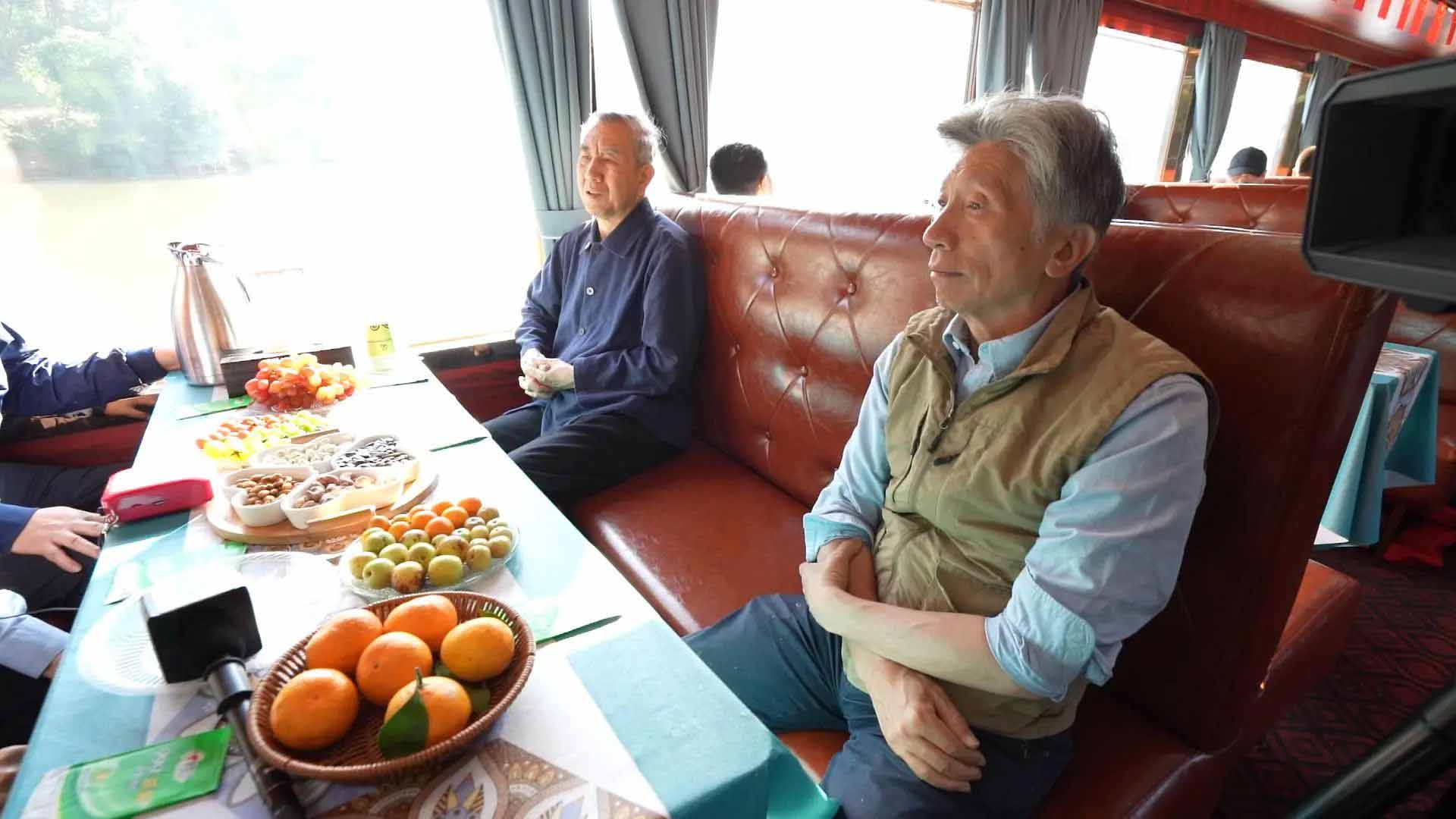 随后,书画名家们乘船沿着风景如画的明江缓缓行进,两岸的悬崖峭壁之上,一幅幅巨大的赭红色岩画,令人为之倾倒。