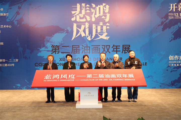 12月12日,由中国美术家协会和江苏省文化和旅游厅共同主办的“悲鸿风度·第二届油画双年展”在江苏省美术馆开幕。江苏省委宣传部副部长徐宁,江苏省文化和旅游厅党组书记、厅长杨志纯,江苏省文学艺术界联合会党组书记、副主席、书记处第一书记常胜梅,江苏省文学艺术界联合会副主席、江苏省美术家协会主席周京新,中国美术家协会副主席、江苏省美术家协会副主席陆庆龙,中国文学艺术界联合会美术艺术中心展览处处长杜松儒共同为展览揭幕。江苏省文化和旅游厅一级巡视员朱斌主持开幕式。