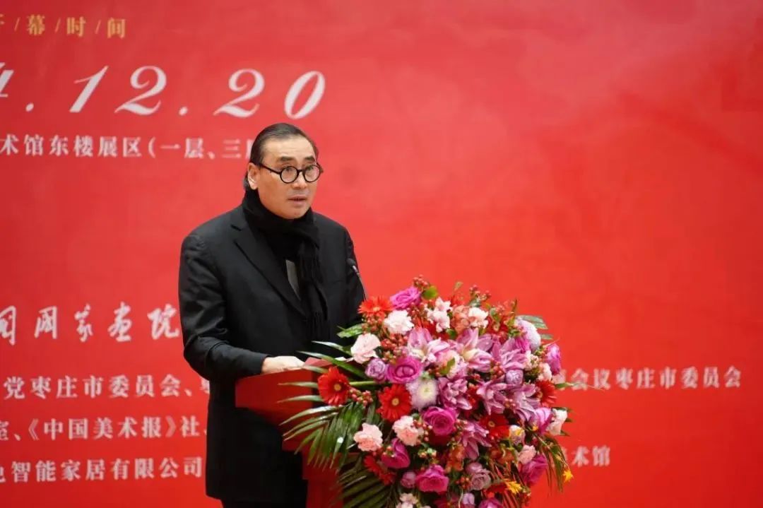 中国国家画院院长、中国美术家协会副主席刘万鸣,中国国家画院原院长卢禹舜,中国艺术研究院副院长徐福山,中国国家画院党委副书记、纪委书记王青云,山东省文学艺术界联合会党组成员、副主席姜慧,中国国家画院原副院长纪连彬、于文江,中国艺术研究院国画院院长牛克诚,中央美术学院中国画与书法学院原院长岳黔山,首都师范大学美术学院院长王海滨,艺术家石齐、刘曦林、邓嘉德、赵奇;中国人民政治协商会议枣庄市委员会主席、党组书记张兵,中国人民政治协商会议枣庄市委员会党组成员、秘书长赵作亮,在京部分枣庄籍老领导同志,枣庄市文学艺术界联合会、枣庄市人民政府驻北京办事处、枣庄市在京流动党员党委、枣庄市美术家协会、枣庄市政协书画院等单位主要负责同志和部分企业家代表,以及中国国家画院各部门各处室相关负责人董雷、刘博涵、吴涛、袁学军、赵培智、沙永汇、邓柯、陈明、任明辉、刘德峰、吴笛、王跃奎、程兴林、陶宏、杜浩、常欣、冯知军、马子雷、颜培大,参展艺术家韩玮、邢少臣、韩英伟、刘玉泉、赵英水、邓远坡、上官超英、徐旷达、秦海、李洋、王永亮、李爱国、林容生、于光华、邢晓林、王珂、王辅民、陈鹏、方土、郭子良、刘西洁、李晓柱、王德芳、张桐瑀、唐建、姚秀明、黄华三、任清、王跃奎、徐冬青、张弓、党震、阴澍雨、谢青、孙震生、姜满、任赛、常欣、付振宝、王瑛、丁鼎、何佳芮、谭斐、陈散吟、汪浩然、王昊等嘉宾出席开幕式。开幕式由中国共产党枣庄市委员会常务委员会委员、宣传部部长陈永生主持。