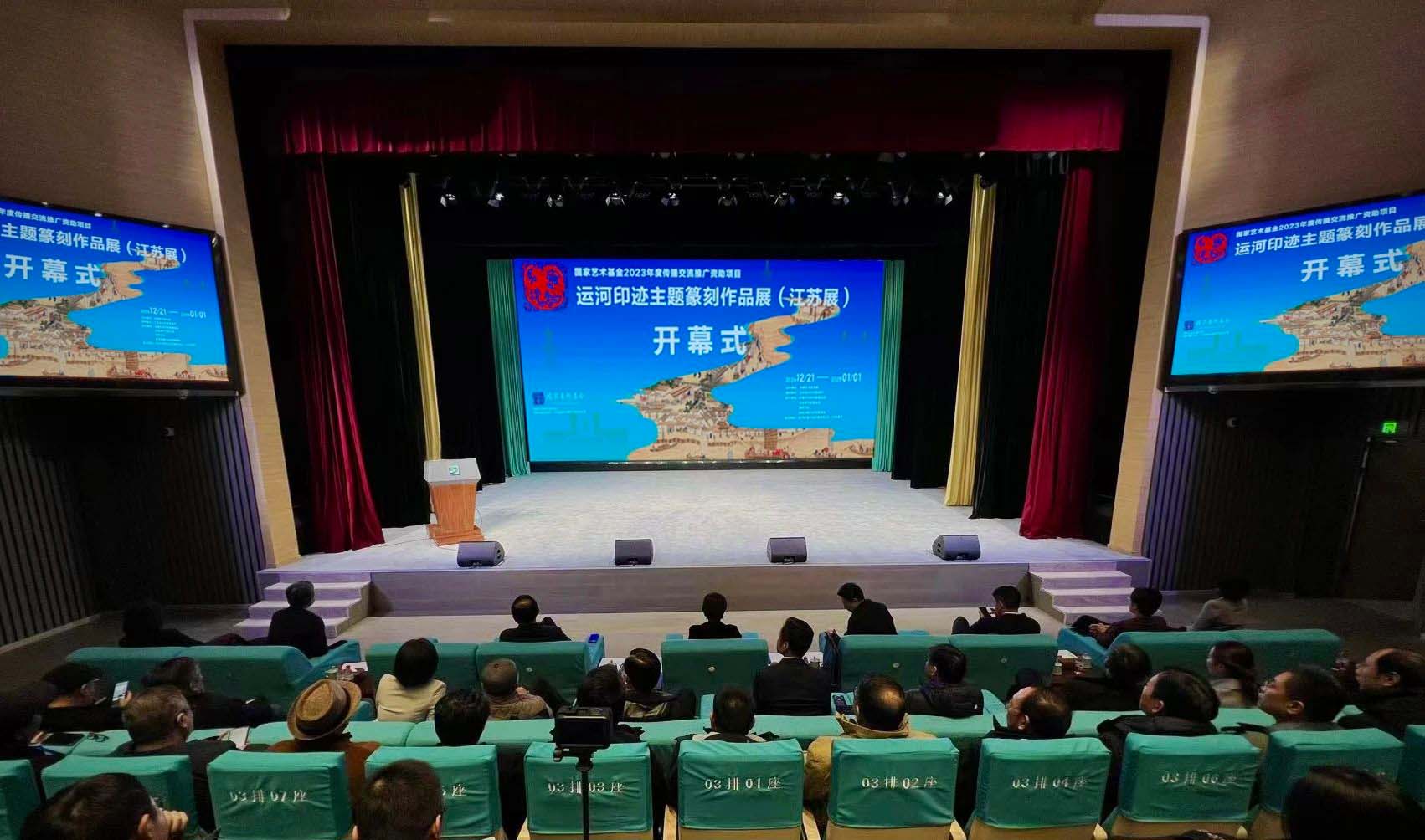 12月23日下午,由中国艺术研究院主办,江苏省文化和旅游厅作为指导单位,中国艺术研究院篆刻院、江苏省书法家协会、南京印社、扬州中国大运河博物馆联合承办的国家艺术基金2023年度传播交流推广资助项目——运河印迹主题篆刻作品展(江苏展)开幕式在扬州中国大运河博物馆隆重举行。