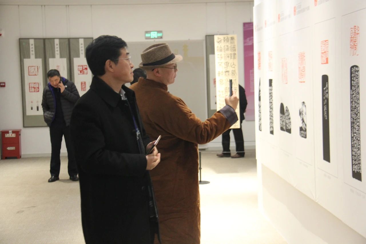 来自中国艺术研究院以及全国各地的领导和艺术家有:中国艺术研究院党委书记王洪俊,中国艺术研究院篆刻院名誉院长、教授、博士研究生导师、国家艺术基金专家委员会委员骆芃芃,中国艺术研究院篆刻院研究员、西泠印社副秘书长、山东印社社长范正红,中国艺术研究院篆刻院理论部主任、博士研究生导师、西泠印社社员冯宝麟,中国艺术研究院篆刻院研究员、九三学社书画院副院长洪亮,中国艺术研究院篆刻院研究员、中国书法家协会篆刻专业委员会委员戴武,中国艺术研究院篆刻院研究员、西泠印社理事桑建华,黑龙江书法家协会主席、国家一级美术师 张戈,新疆兵团书法家协会主席、中国书法家协会理事孙朝军,广州岭南印社社长、广州岭南书画院院长、华南师范大学研究生导师曲斌,济宁市书协主席、西泠印社社员谢长伟,沧州市文联副主席、沧州美术馆馆长石磊,中国艺术研究院篆刻院交流部副主任曲学朋,四川美术学院副教授、西泠印社社员尚天潇,廊坊师范学院教师吴英昌,北京城市学院教师秦鹏,燕山大学教师王润泽,中国艺术研究院篆刻院青年艺术家王盛贞、刘家汇,还有部分中国艺术研究院篆刻方向的博士硕士研究生。江苏地区的艺术家有:南京财经大学二级教授、硕士生导师,江苏省书法家协会副主席、南京印社社长仇高驰,西泠印社社员、南京印社及南京市书法家协会顾问苏金海,江苏省书协副秘书长纪松,南京艺术学院美术与书法学院副教授、硕士生导师,南京印社秘书长荀海,扬州博物馆名誉馆长、中国大运河联合申遗办主任、原扬州市文物局局长顾风,中国楹联学会匾联委员会主任、江苏省楹联研究会副会长、南京艺术学院特聘教授袁裕陵,江苏大学艺术学院教授、博士生导师陈道义,南京印社创作部副主任、西泠印社社员陈伯舸,宝应县文联副主席曹文阳,宝应县艺术家张泽民、薛明泓、许爱明等以及扬州地区书法篆刻爱好者、新闻媒体朋友们参加了开幕式。