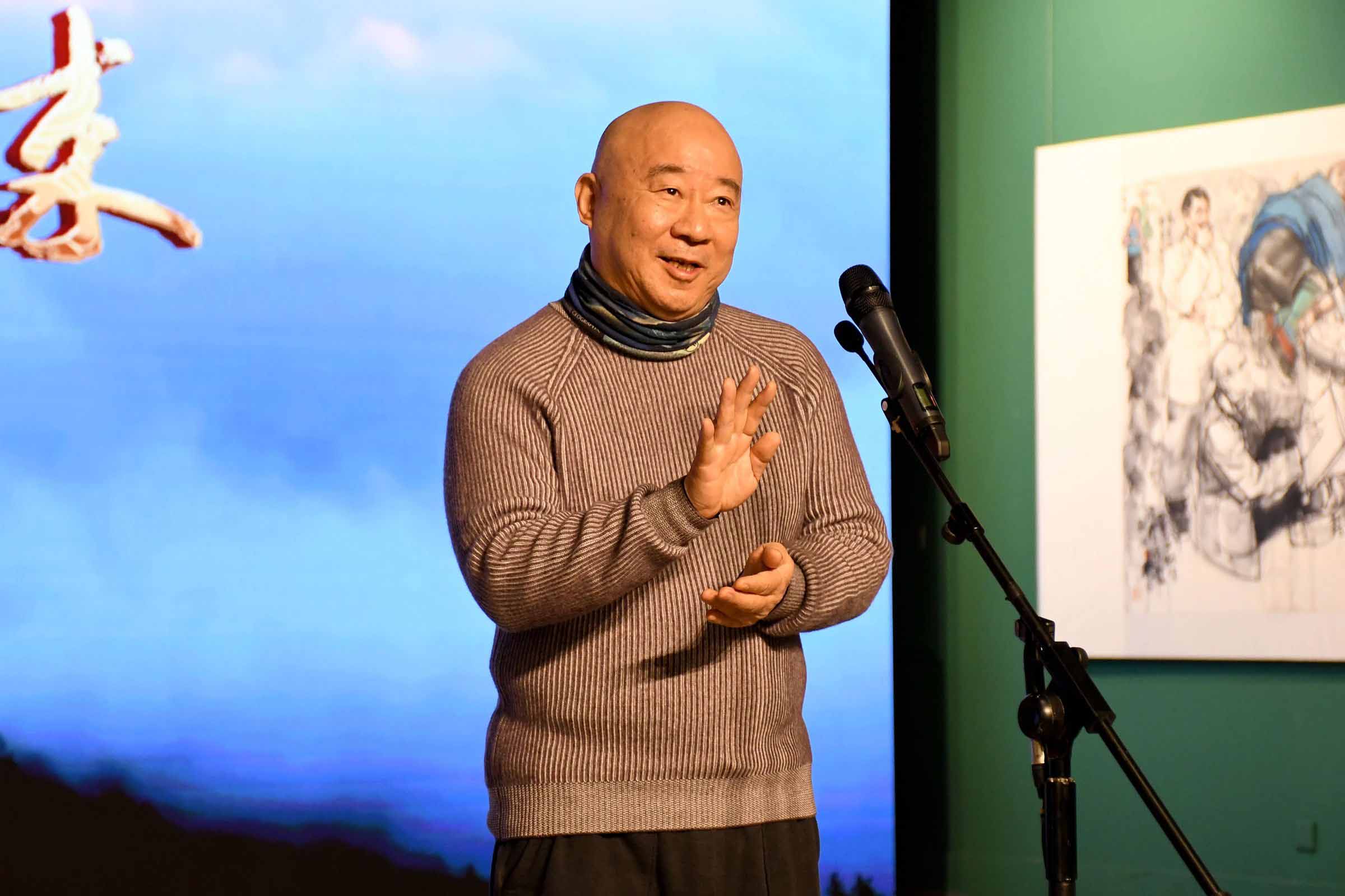 参展艺术家冯远、唐勇力、田黎明、史国良、范扬依次发言。他们表达了对此次展览成功举办的感动与感激之情,回顾了几十年来艺术创作之路的艰辛与不易,并希望在今后创作出更多深入生活、扎根人民,反映时代主旋律的艺术精品。他们还认为人物画创作是对时代和历史再认识的过程,在新时代艺术创作的新征程中,艺术创作要紧随时代发展,在砥砺前行中树立文化自信。