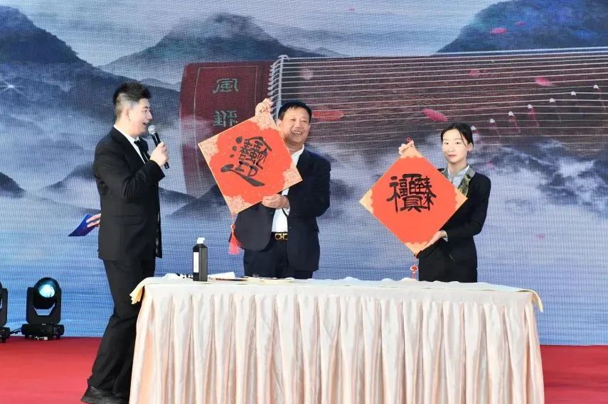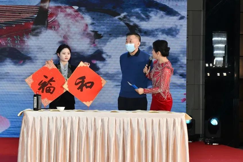 年会现场,主持人委员会、扬州文促会、少年宫文化工作委员会、传统演艺工作委员会等分支机构带来了相声、歌舞、诗朗诵等精彩纷呈、多种多样的艺术演出。名誉主席王石与副主席杨拴明在现场挥毫泼墨,为年会题写祝福;张玉文主席声情并茂的朗诵了戴望舒名作《雨巷》等。
