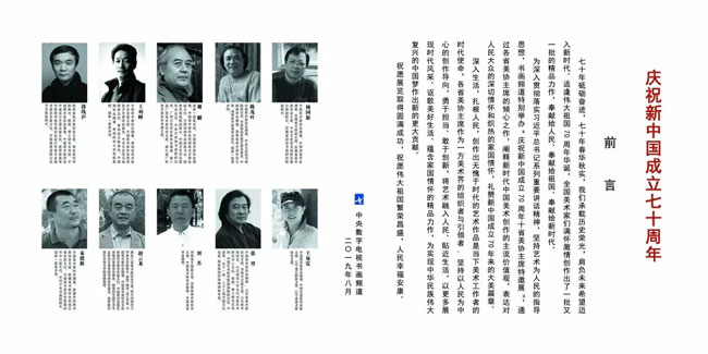 为深入贯彻落实习近平总书记系列重要讲话精神,坚持艺术为人民的指导思想,书画频道特别举办“庆祝新中国成立70周年十省美协主席特邀展”,通过各省美协主席的倾心之作,阐释新时代中国美术创作的主流价值观,表达对人民大众的深切情怀和炽热的家国情怀,礼赞新中国成立70年来的大美篇章。